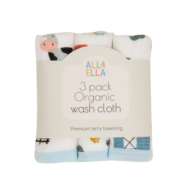 All4Ella Organic Wash Cloths 3pk Barnyard