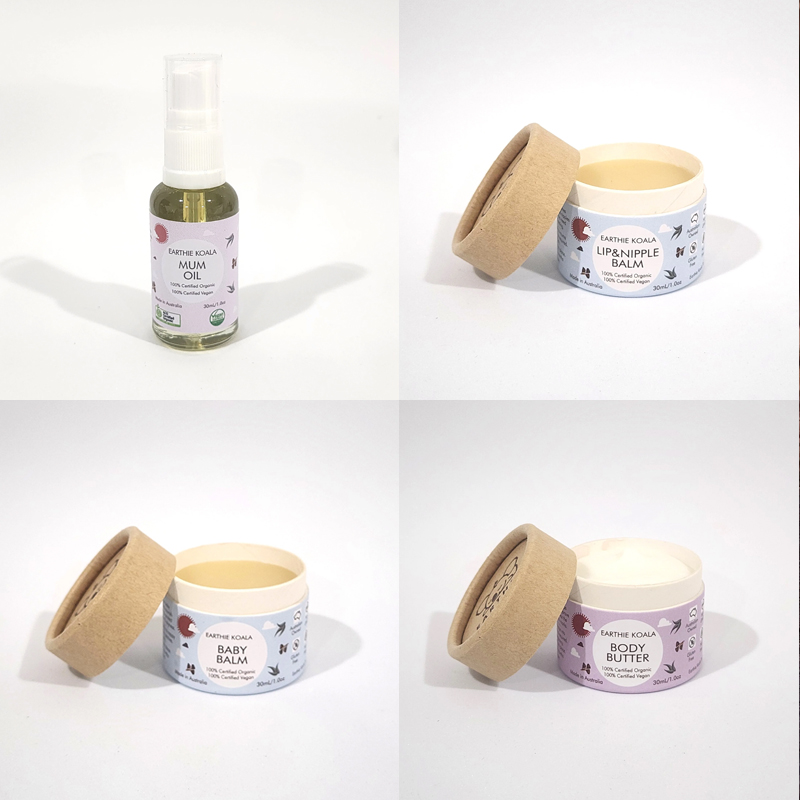 Our Mum and Bub Minis Set is a curated collection of certified organic, vegan, gluten-free, and nut-free skincare products designed to nurture sensitive skin during pregnancy, postpartum, and early babyhood. Made with love and free from synthetic additives, preservatives, and nasties, this set provides gentle, effective care for both mum and baby. Perfectly sized for hospital bags, nappy bags, travel, or gifting, it delivers practical, everyday skincare that is safe for the whole family.