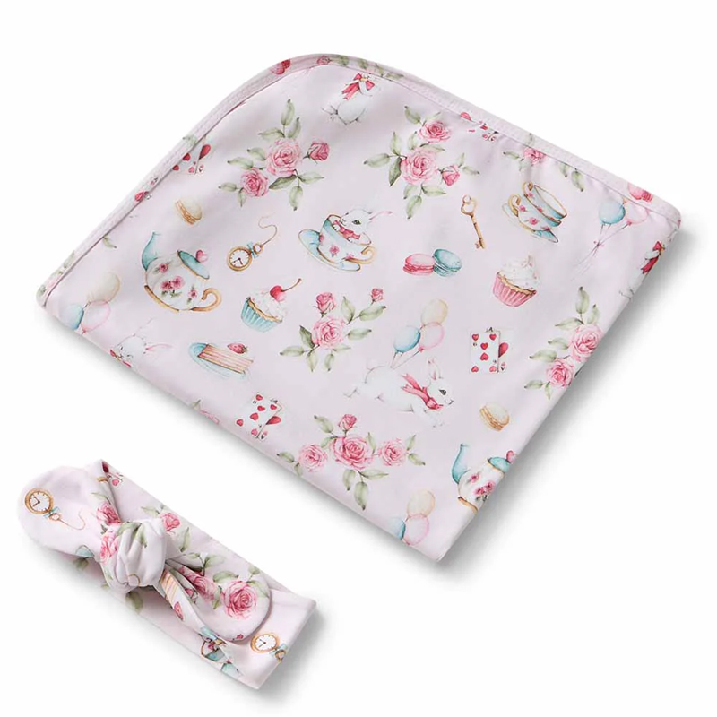 Snuggle Hunny Kids Baby Jersey Wrap & Topknot Set Alice’s Tea Party
