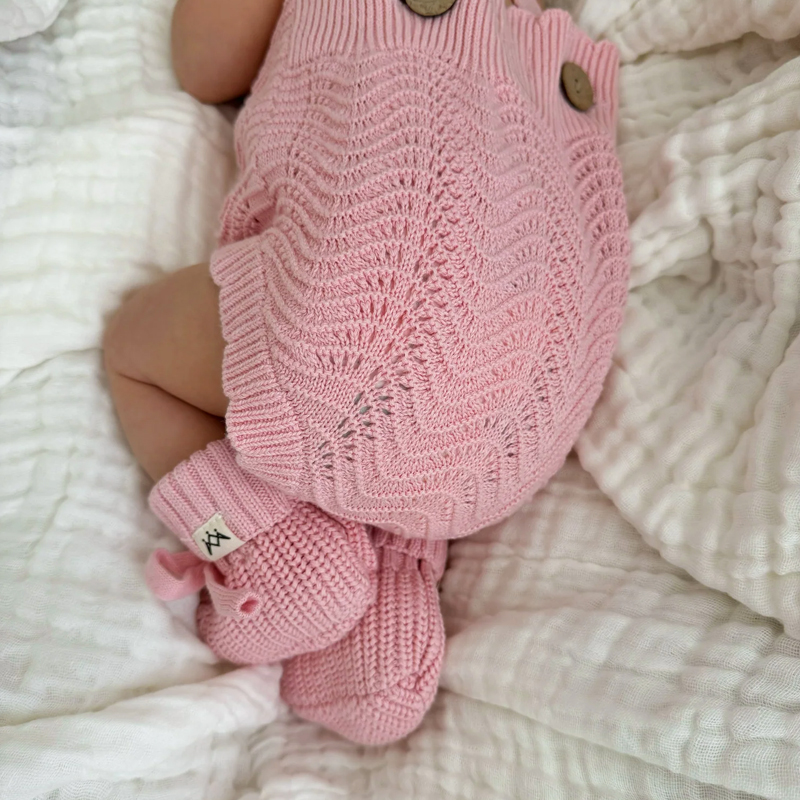 A true baby wardrobe staple! Our Textured Knit Booties are a baby accessory must have. Made from the softest cotton to keep your baby’s feet warm whilst still being able to breathe. Throw in your nappy bag and have them ready to go once that afternoon chill sets in.
